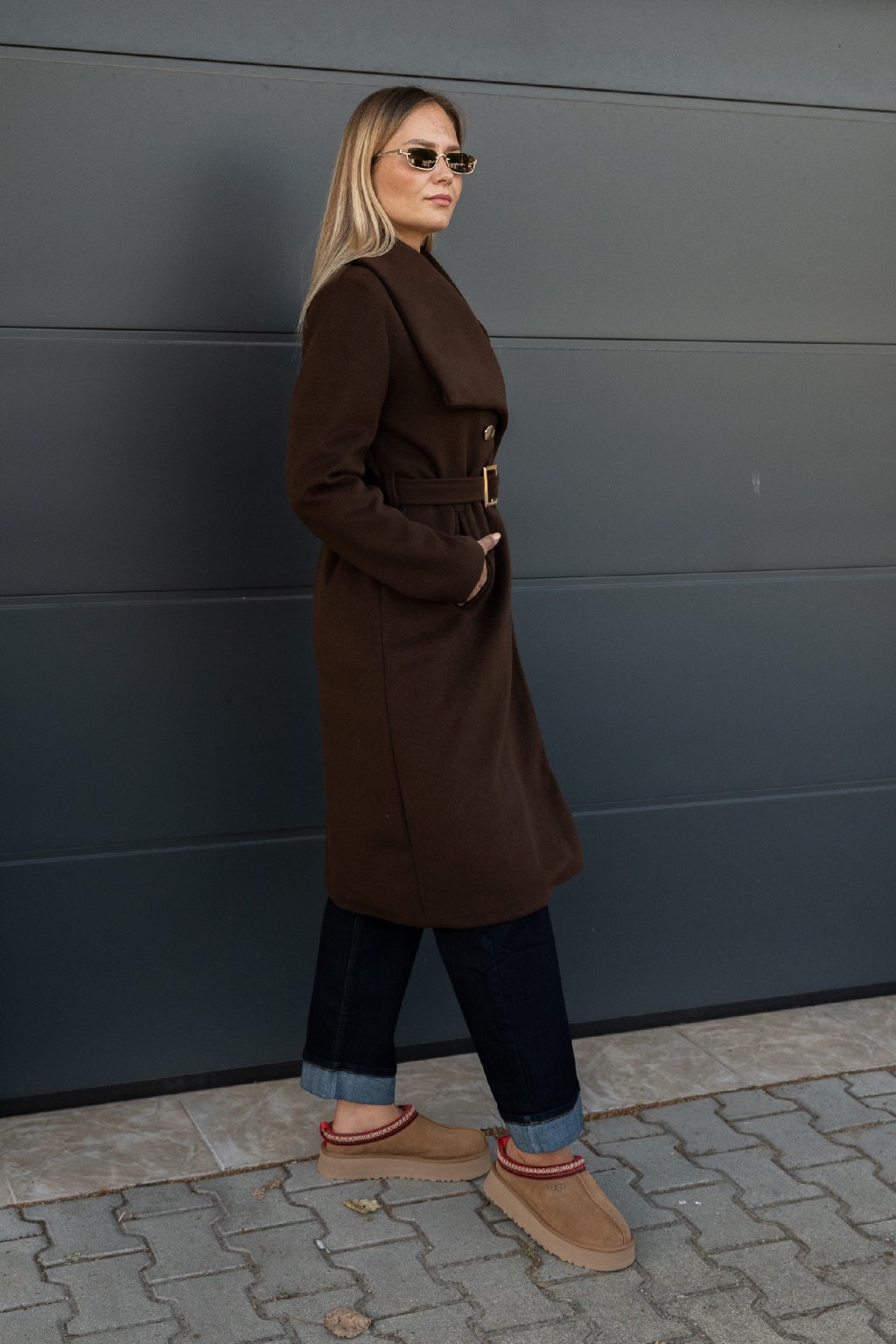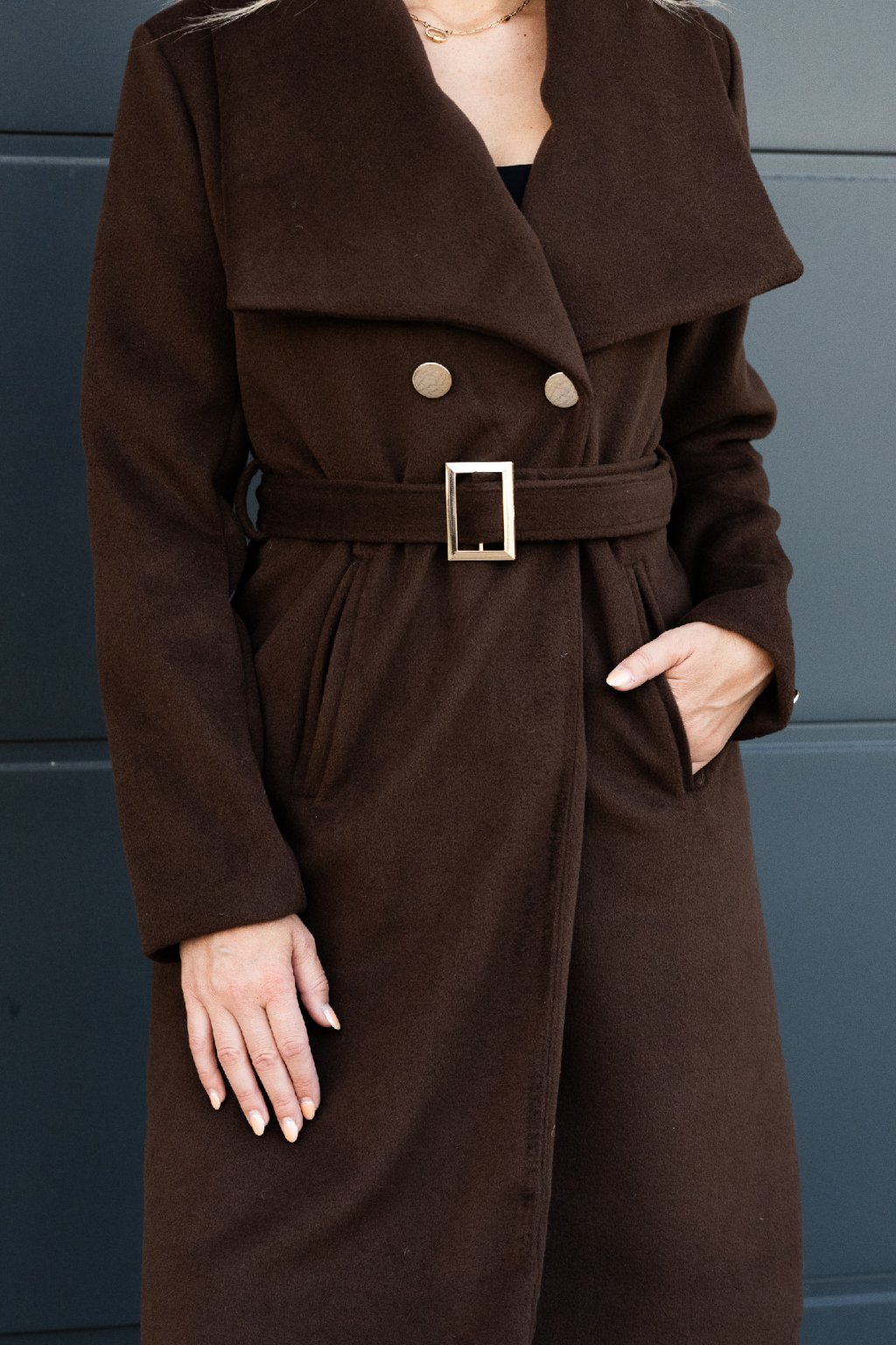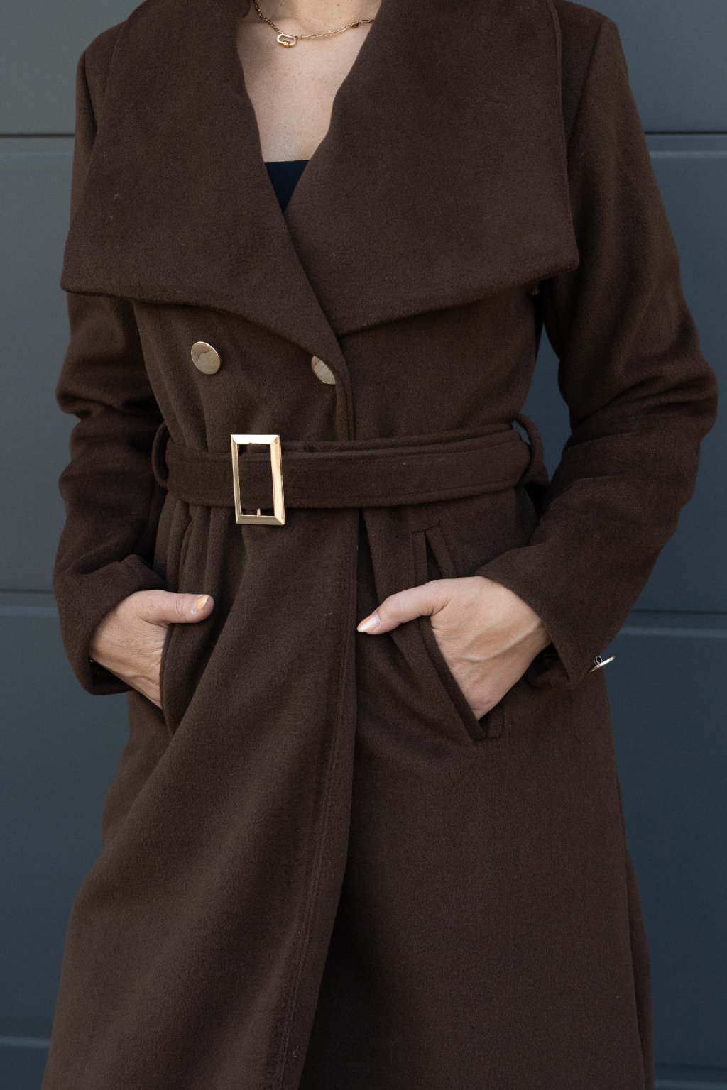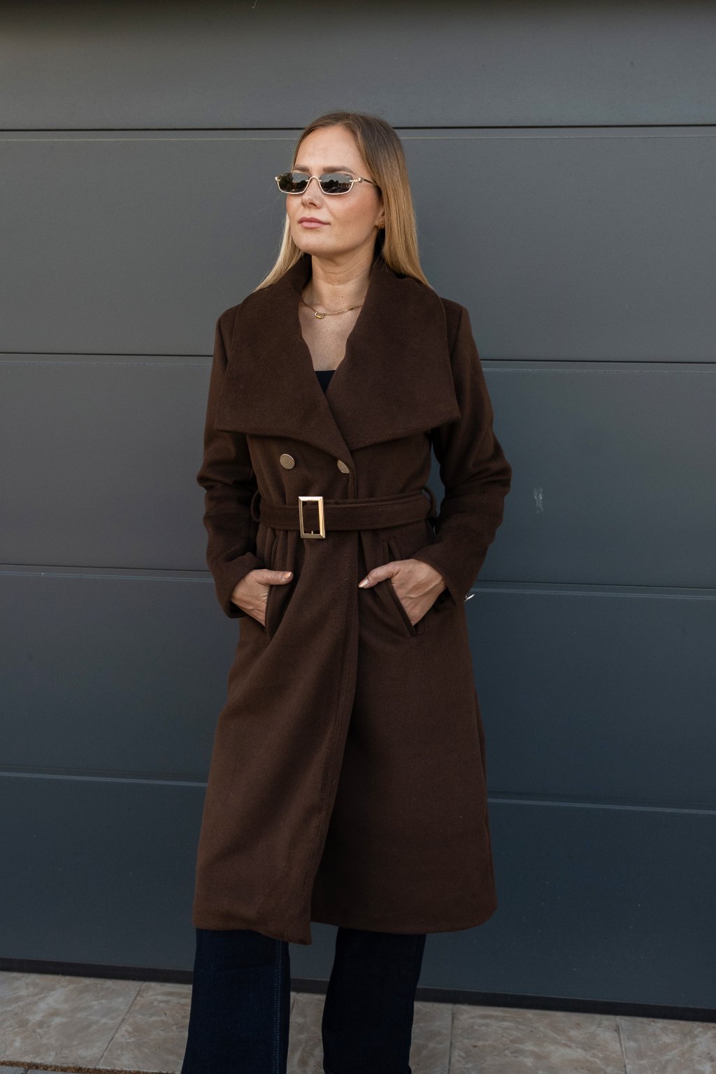 Elegantný jesenný–zimný kabát z látky, odporúčame veľkosti S–L