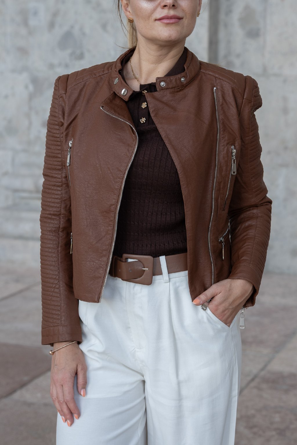 Elegantná jesenná koženková bunda – odporúčame vo veľkosti S-L.