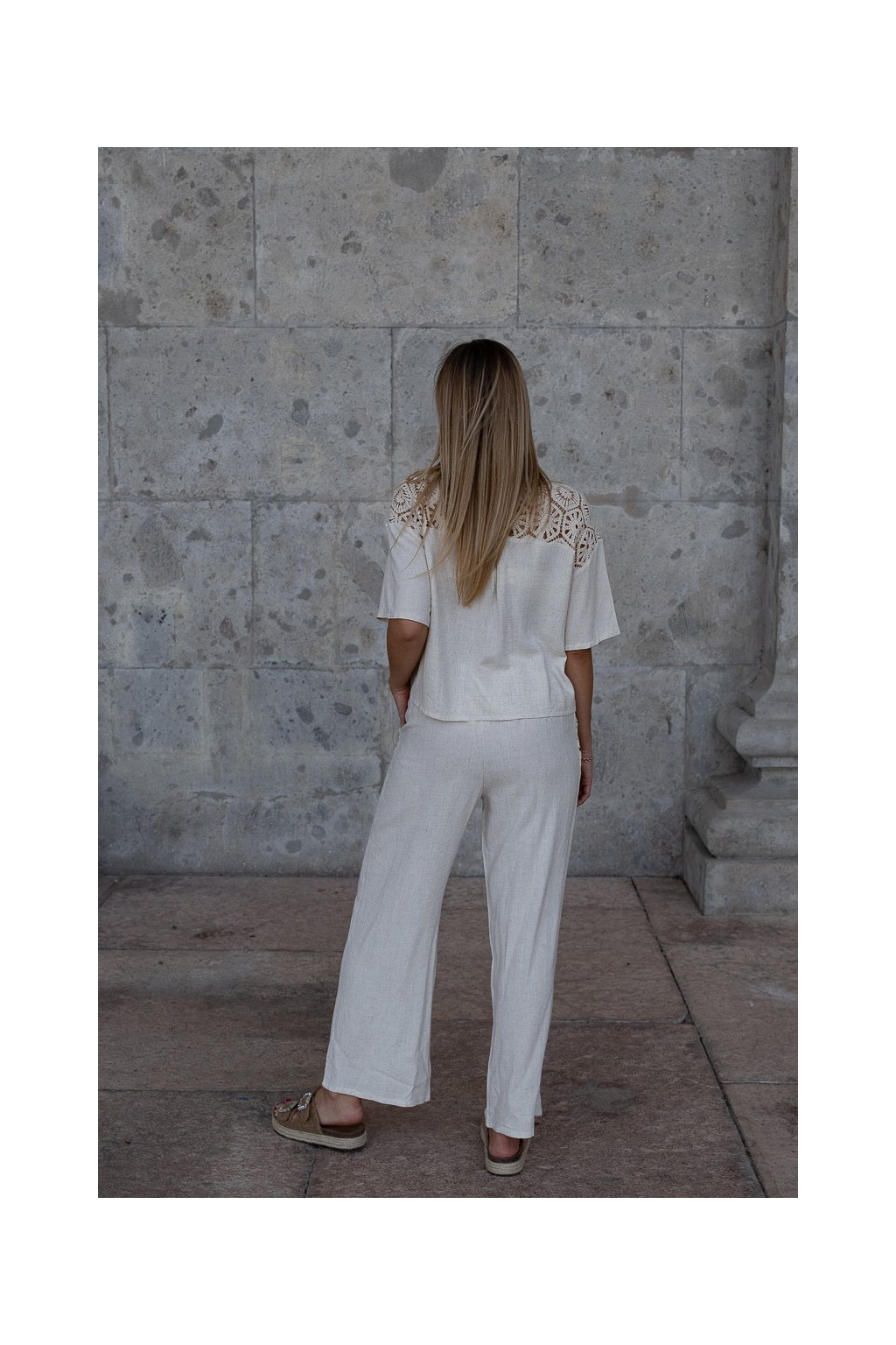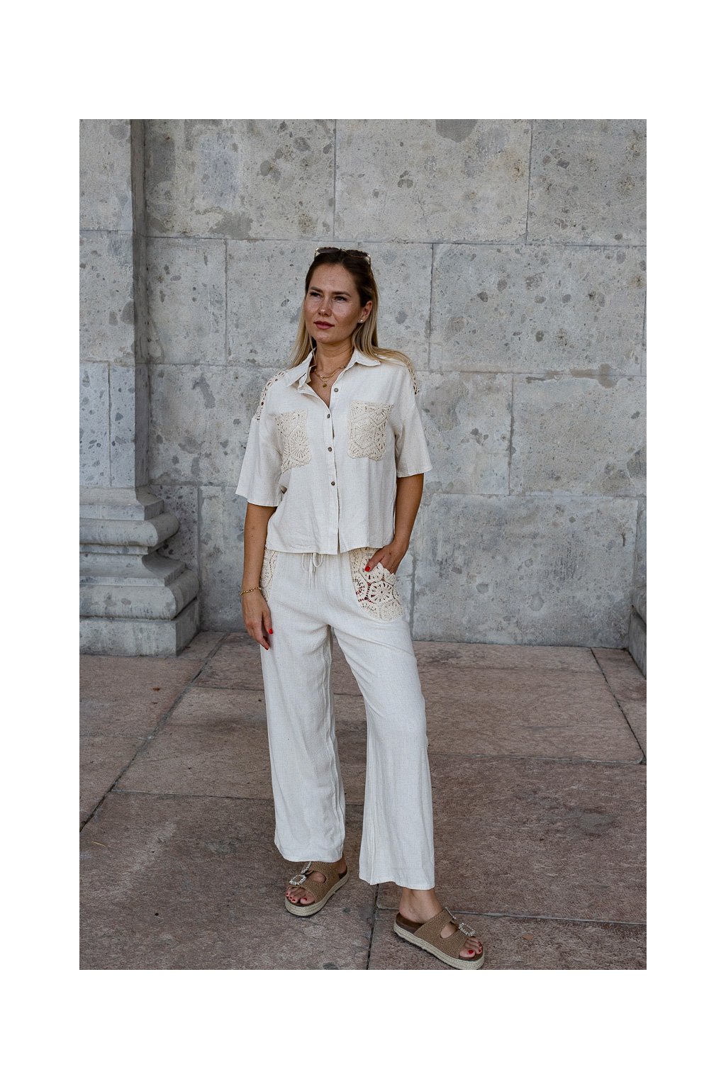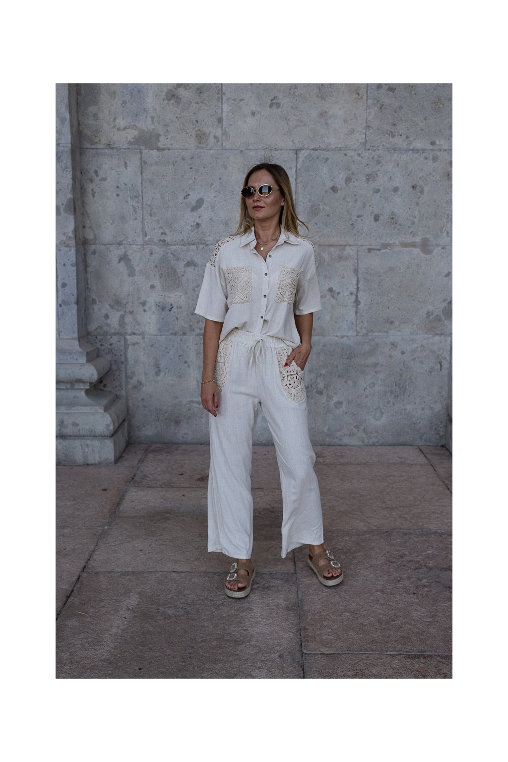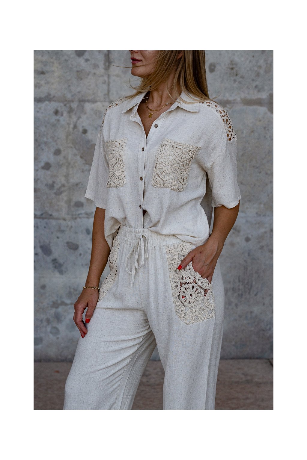 letný, vzdušný set s efektom ľanového plátna v univerzálnej veľkosti – ideálna voľba na teplé dni, ak hľadáš pohodlie a prirodzený vzhľad.
